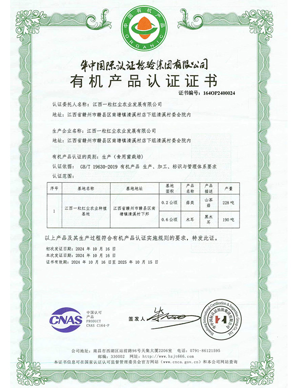 有機產(chǎn)品認證證書